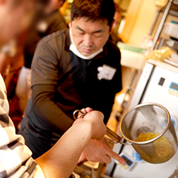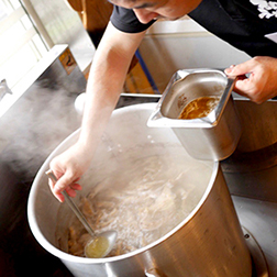 ・もっともっと売上を上げたい、個性的な商品を作りたいという方に向け長年に渡り様々なラーメンを作ってきた経験を活かして限定メニュー作りの考え方を伝授し実際に商品作りをし、現場で自走出来るようにしていきます。
