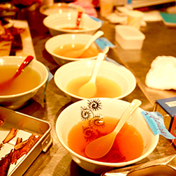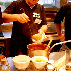 現在、ラーメン店を経営する方を限定に、ラーメンの味作りのプロのコンサルタントである小西直行氏を中心に、ラーメンタレ、節、スープ、麺のそれぞれのスペシャリストが協力。現場で実際に参加される生徒さんのラーメンをテストキッチンに持ち込み試食し、味作り、味修正を行うのは勿論。インパクトがないと売上に悩む方には盛り付けやパーツもその場で手を加えてラーメンをブラッシュアップしたり、時には180度違うラーメンを作る事もします。また、限定メニューや原価の考え方や売価の付け方など現場で困っている事を知識と体験により現場で自走が出来るように教えていきます。売上に伸び悩んでいる方、その原因が今のラーメンにあるのでは?とお悩みの方は勿論、もっと個性的な限定メニューを出したいが考え方が分からない方、原価率をもっともっと下げたい方にオススメのコースです。