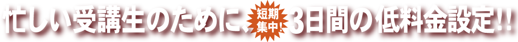 会社勤務の中、時間を割くのは大変です。そのため最短集中の3日間に設定。また、次の世代のためにと先輩方が手弁当で応援いただき、低料金が可能になりました。