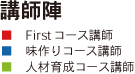 現在、ラーメン店を経営する方を限定に、ラーメンの味作りのプロのコンサルタントである小西直行氏を中心に、ラーメンタレ、節、スープ、麺のそれぞれのスペシャリストが協力。現場で実際に参加される生徒さんのラーメンをテストキッチンに持ち込み試食し、味作り、味修正を行うのは勿論。インパクトがないと売上に悩む方には盛り付けやパーツもその場で手を加えてラーメンをブラッシュアップしたり、時には180度